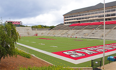 Burgess-Snow Field at the Jacksonville State University Stadium has been the football home of the Jacksonville State Gamecocks since 1947. During that time, it has been expanded and remodelled several times, with a US$47m expansion in 2010 making many improvements – including a seven-storey tower that includes student housing, a press box, broadcast facilities, and 33 luxury skyboxes.