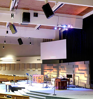 A ten-year-old church on the west side of Music City, Immanuel Nashville irecently moved into 1,000-seat sanctuary. Given its wide, fan-shaped seating, Essential Audio looked to Danley Sound Labs’ point-source loudspeaker pattern control to create three separate zones of left-right stereo imagery, and also an exploded mono system for speech.