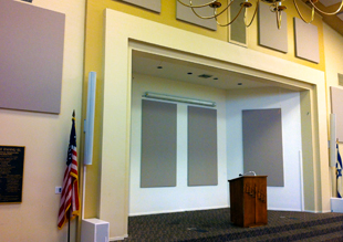 Having suffered from poor sound and an aging sound system, Temple House called on Joe Orlando of Commercial Media Systems, who quicly identified the shoebox shape of the room, and its half-oak floor, hard walls and stucco ceiling as the source of the acoustic problems – giving a reverb time of more than 2s and ‘You couldn’t understand a conversation from three feet away,’ he says.